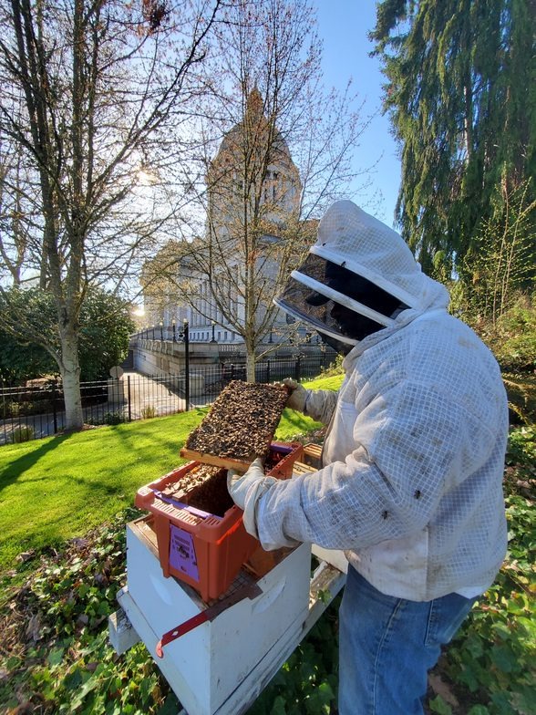 With the Healing Through Hives project, we were able to establish 6 Veteran community apiary sites throughout Western WA, as sites for Veteran beekeepers to get hands-on beekeeping experience, work with mentors and other beginning beekeepers, and build a sense of community. We have hosted apiary sites at GRuB, Roots Farm in Poaulsbo, Growing Veterans in Lynden, the Veterans Ecological Trades Collective in Rochester, the WDVA’s Orting Veterans Farm in Orting, the WA Governor’s Mansion in Olympia, and at the Haki Farmers Collective at the Victory Farm site when they took over the site in 2020.